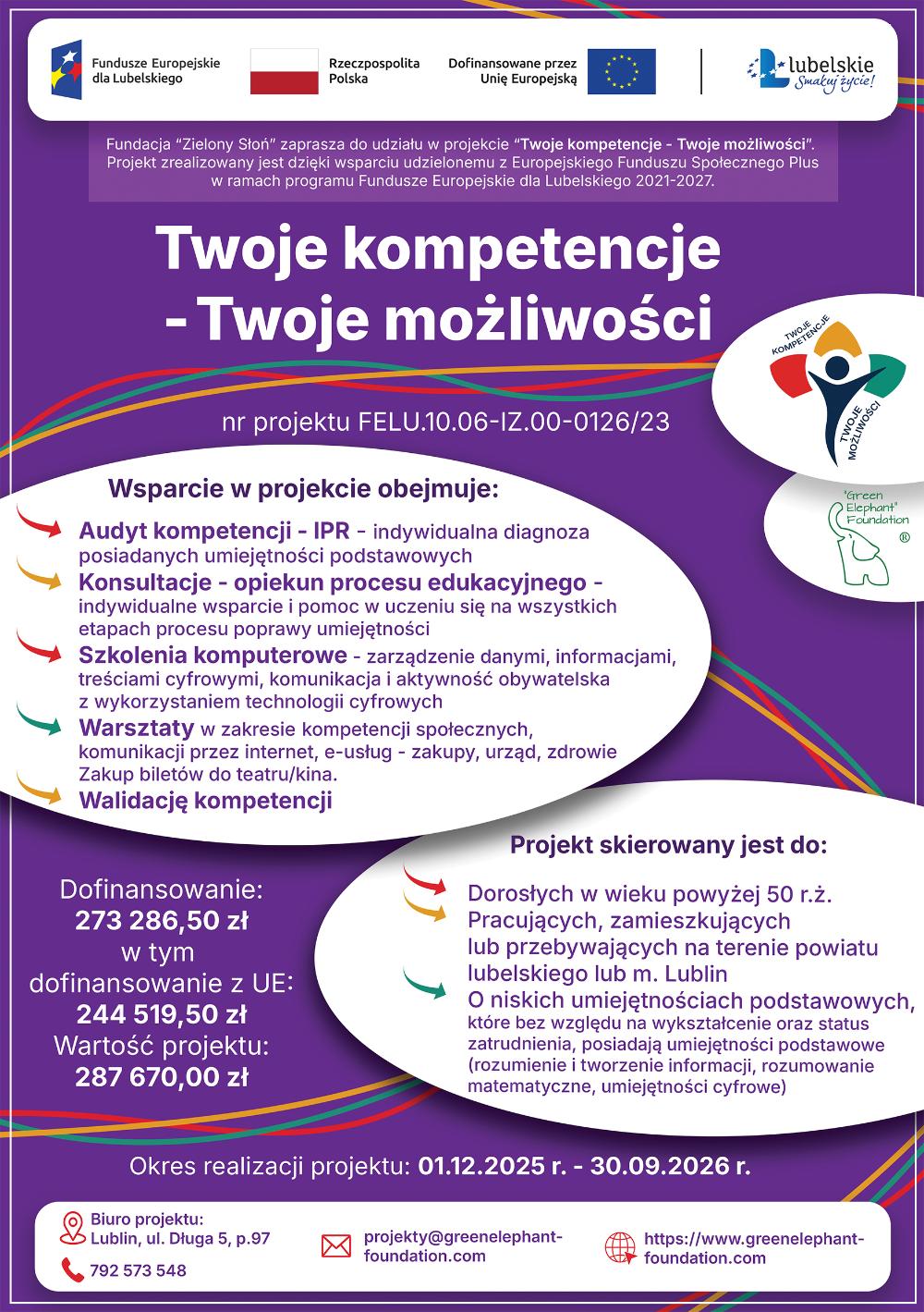Fundacja „Zielony Słoń” realizuje projekt „Twoje kompetencje – Twoje możliwości”,,nr projektu FELU.10.06-IZ.00-0126/23