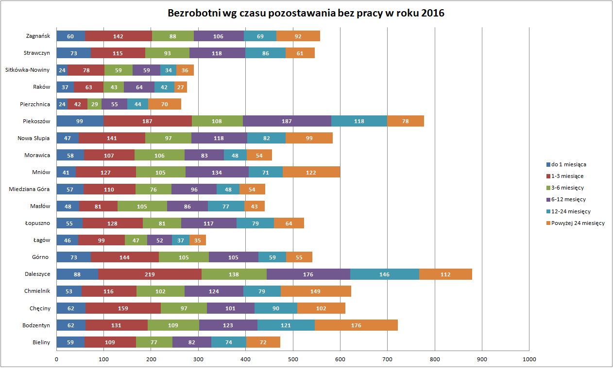 Statystyki - Stan bezrobocia w gminach 2016 - Powiatowy Urząd Pracy w Kielcach