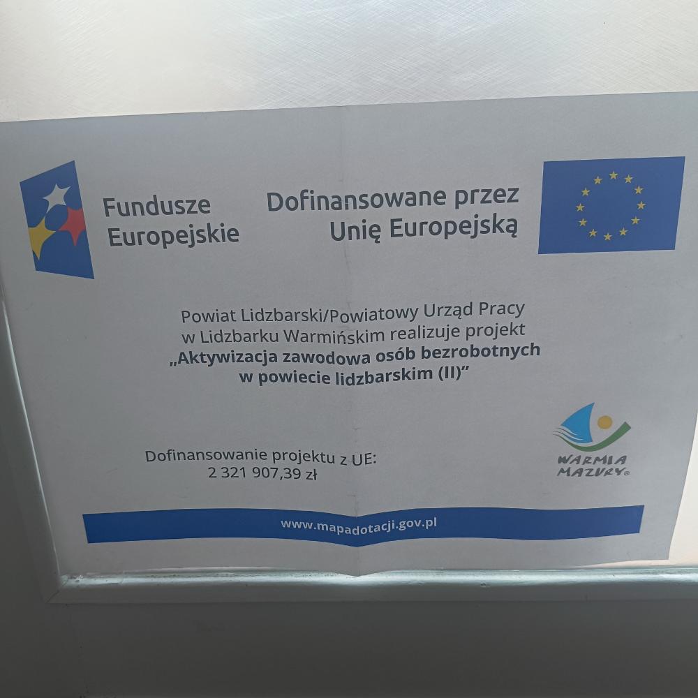 Powiatowy Urząd Pracy w Lidzbarku Warmińskim realizuje projekt „Aktywizacja zawodowa osób bezrobotnych w powiecie lidzbarskim (I)" w ramach programu regionalnego Fundusze Europejskie dla Warmii...